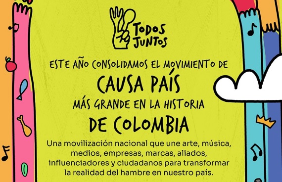 Con casi 20 millones de colombianos enfrentando insuficiencia alimentaria, más de 2 millones padeciendo hambre crónica y miles de niños sufriendo desnutrición aguda, la Red de Bancos de Alimentos de Colombia (ABACO) lanza una histórica campaña: TODOS JUNTOS. Esta movilización busca consolidar el movimiento CAUSA PAÍS, una iniciativa que convoca a ciudadanos, artistas, empresas, marcas, influenciadores y medios para transformar esta dura realidad.