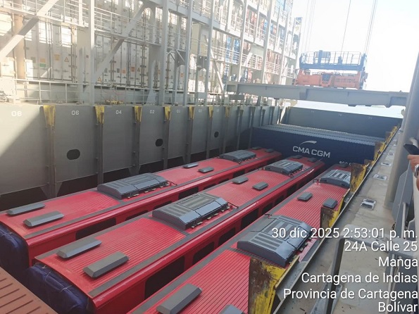 El cuarto tren de la Primera Línea del Metro de Bogotá arribó al país y fue desembarcado en el puerto de Cartagena. En los próximos días iniciará su traslado terrestre hacia la capital, donde continuará el proceso de alistamiento y pruebas del proyecto de movilidad más importante del país.