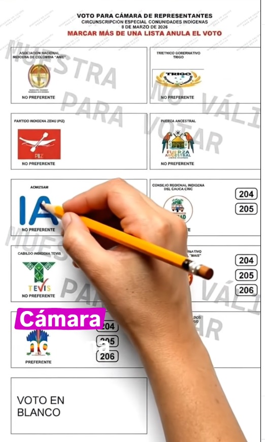 En la papeleta electoral aparecerá identificado con la sigla “IA” dentro de la categoría correspondiente a las circunscripciones indígenas.