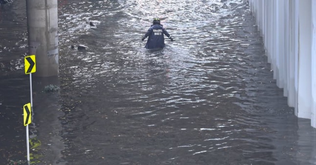 En el paso deprimido, el agua se acumuló progresivamente hasta cubrir parte de la vía, lo que obligó a restringir el paso vehicular mientras se adelantaban labores de drenaje.